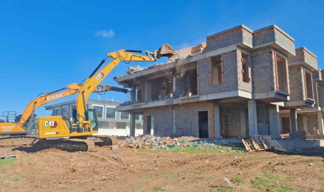 Didim Belediyesi ilçe genelinde kaçak ve imalata aykırı yerlerin yıkımını sürdürüyor. Hisar Mahallesi 1043 ada 4 parsel üzerinde özel bir firmanın sürdürdüğü inşaatta yıkım çalışması gerçekleştirdi. Teknik hata sebebiyle bir kısmı başka arazi üzerine yapılan ve kayma olan 8 blok 32 bağımsız bölümden oluşan sitenin yıkım işlemini Belediye Başkanı Hatice Gençay, Başkan yardımcıları Aydan Aşık Turgut ve Kaan Topçuoğulları, inşaat firması sahibi Hasan Günay ve teknik personel katıldı.