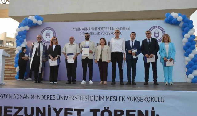 Didim MYO'nun 2025 yılı mezuniyet töreni Didim Amfi tiyatronun bahçesinde gerçekleştirildi. Mezuniyet törenine Didim Garnizon Komutanı Erkut Arslan, Didim Belediye Başkanı Hatice Gençay, Didim Cumhuriyet Başsavcısı Anıl Altay, ADÜ Didim MYO Müdürü Dr. Öğr. Üyesi M. Nimet Çavuş, ADÜ'lü dekan ve akademisyenler, oda başkanları ve temsilciler, öğrenciler ve aileleri katıldı.