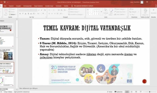 Akdeniz Üniversitesi Sosyal Bilimler Meslek Yüksekokulundan Doç. Dr. Yasemin Bilişli, "Yapay Zekâ Çağında Influencer Ekonomisi: Dijital Güvenin Anatomisi" başlıklı sunumunda influencer ekonomisinin evriminin yapay zekâ destekli içerik üretimiyle yaşadığı dönüşümü aktardı. Bağımsız araştırmacı Dr. Hakan Öngören, "Yeni Eğitim ve Dijital Vatandaşlık" başlığı altında dijitalleşen dünyada eğitim modellerinin değişimini, dijital vatandaşlık bilincini, 21. yüzyıl becerileri ve öğretmenin rolünü anlattı.