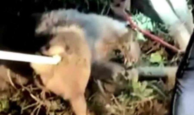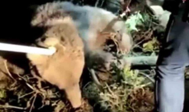 Dikenli tellerin arasında mahsur kalan ayı kurtarıldı