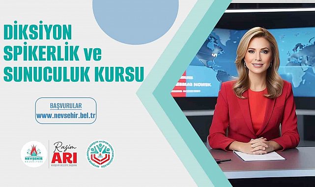Nevşehir Belediyesi tarafından medya mensupları, halkla ilişkiler çalışanları, seminer ve konferans yöneticilerine yönelik 'Diksiyon, spikerlik ve sunuculuk' kursu açılacağı bildirildi. Teorik ve uygulamalı olmak üzere iki aşamada gerçekleştirilecek eğitimlerle kursiyerlere görsel medya, televizyon haberciliği, canlı program çekimleri, spikerlikte jest ve mimik, bakış, duruş, spiker okumalarında duyguları yansıtma, sunuculukta jest ve mimik gibi konularda eğitim verileceği ifade edildi. Ücretsiz olarak gerçekleştirilecek olan kursa katılmak isteyenlerin Nevşehir Belediyesi web sitesi üzerinden kayıt oluşturmaları gerekiyor. Etkili bir iletişim kurmak isteyenler, doğru Türkçe ile konuşmak isteyenler, sunum yaparken zorluk çekenler, topluluk içinde konuşurken heyecanlananlar, topluluk önünde konuşurken beden dilini kullanmakta zorlananlar, iletişim alanında çalışanlar, diksiyon ve güzel konuşma alanlarında kendini geliştirmek isteyenler kursa katılabiliyor.