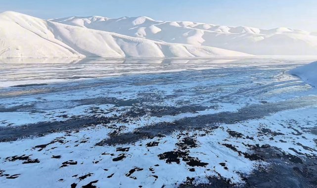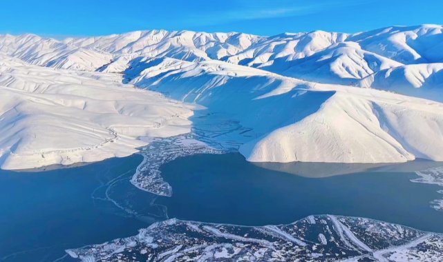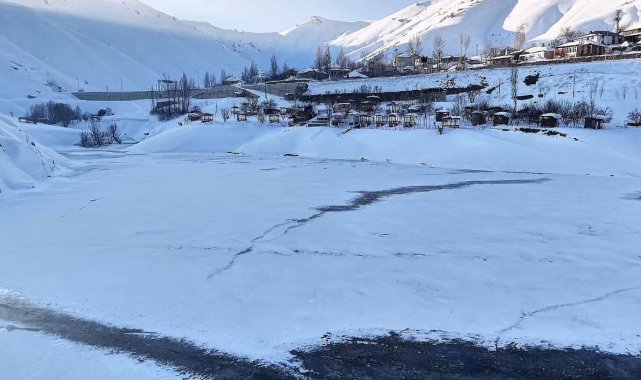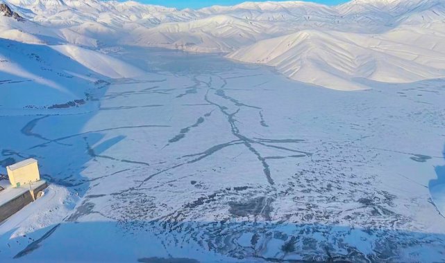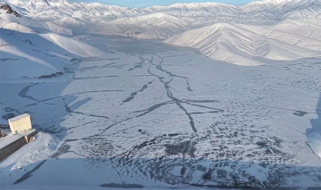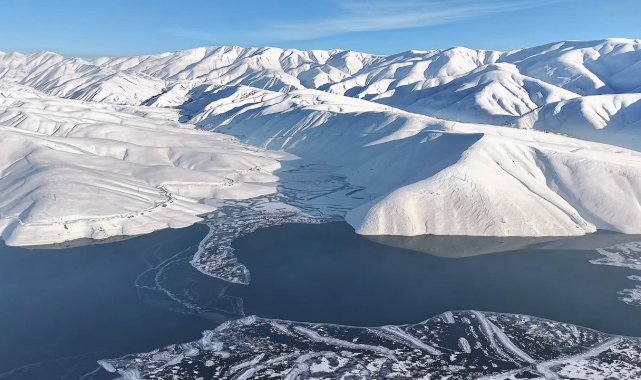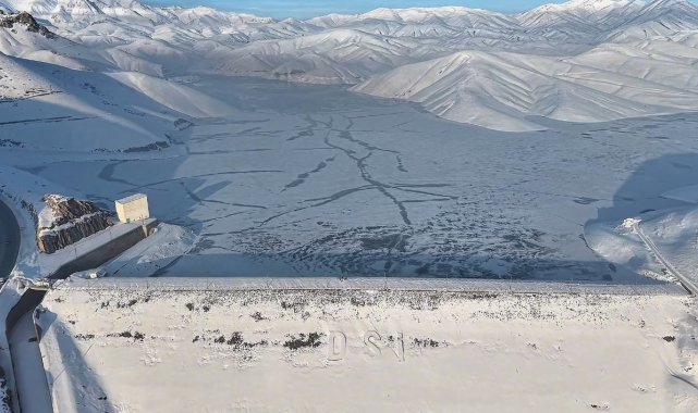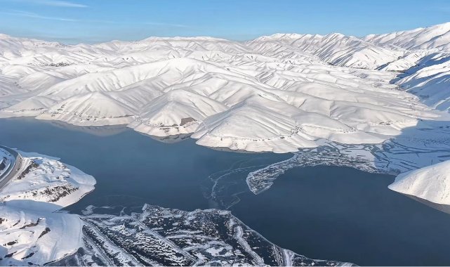 Hakkari'nin Yüksekova ilçesinde hava sıcaklığının sıfırın altına düşmesiyle Dilimli Barajı'nın yüzeyi kısmen buzla kaplandı.