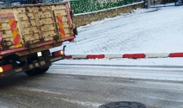 Dilovası'nda yoğun kar yağışı sonrasında ulaşımın aksamaması için yollar buzlanma riskine karşı tuzlanıyor.