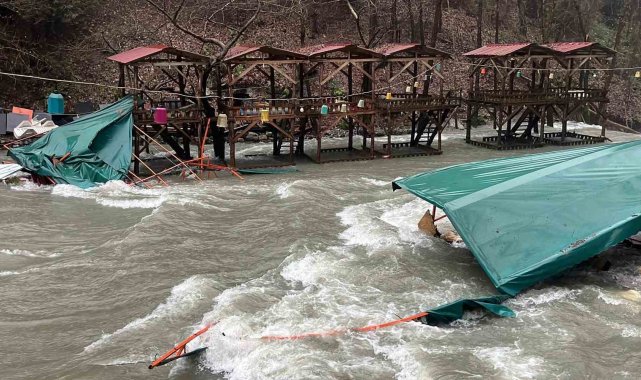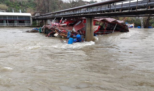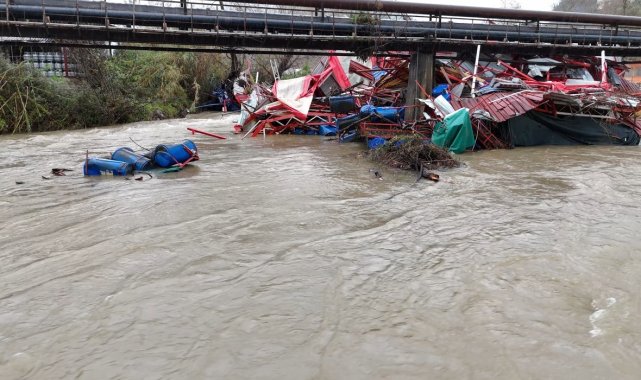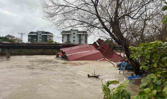 Öte yandan, Dim Barajı kapaklarının aşırı yağış sonrası kontrollü şekilde açılmasıyla birlikte suyun debisi daha da yükseldi. Akşam saatlerinde çaydan yoğun şekilde akan su, bazı işletmelere ait çardakları yerinden sökerek sürükledi. Tahta parçaları ile demir aksamların bir kısmı sular altında kalırken, bazıları ise akıntıyla metrelerce taşındı.