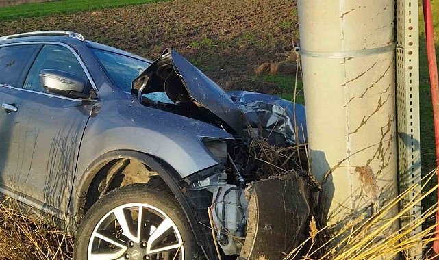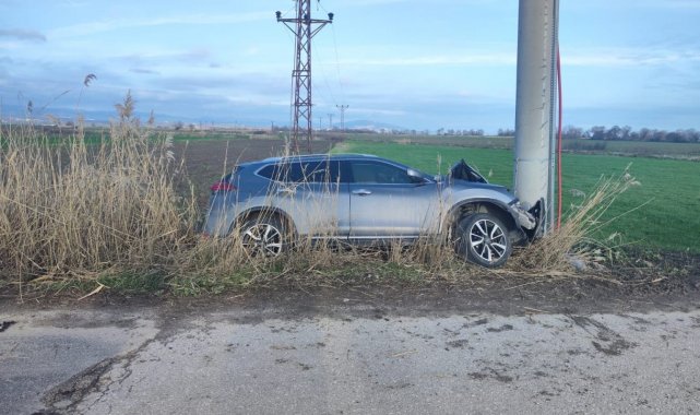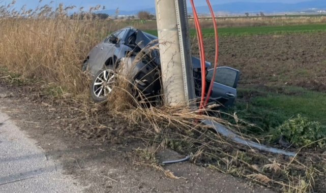 Bursa'nın Karacabey ilçesinde, direksiyon hakimiyetini kaybeden sürücü direğe çarpması sonucu yaralandı.