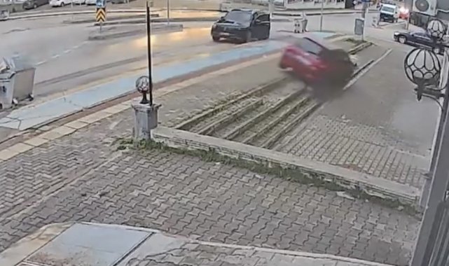 Kaza, Osmangazi ilçesi Güneştepe mevkisinde meydana geldi. Edinilen bilgiye göre, direksiyon dersi alan sürücü panikleyerek fren yerine gaza bastı. Kontrolden çıkan otomobil önce kaldırıma çıktı, ardından bir dükkânın önünde bulunan boş alana düştü. Kazada yaralanan olmazken, araçta hasar meydana geldi. Olay yerine gelen ekipler çevrede güvenlik önlemi alarak, araç bulunduğu yerden çıkarıldı. Kaza anı ise, bir iş yerinin güvenlik kamerası tarafından saniye saniye kaydedildi.
