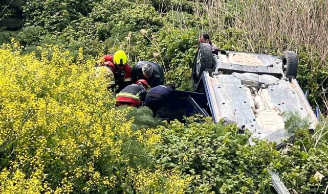 Direksiyon hakimiyetini kaybeden araç yoldan çıktı: 3 yaralı