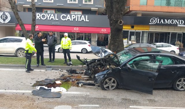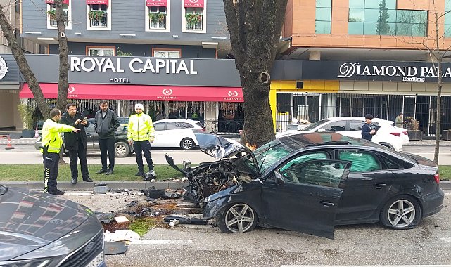 Bursa'da direksiyon hakimiyetini kaybeden kadın sürücü ağaca çarptı. Kaza yaralanan sürücü sağlık ekiplerince ilk müdahalesinin ardından hastaneye kaldırıldı.