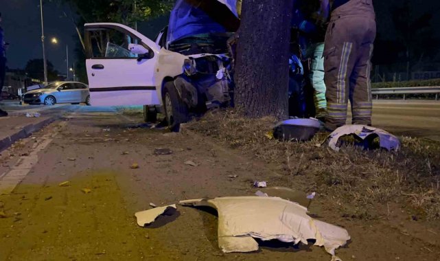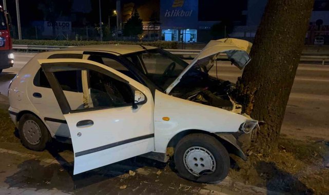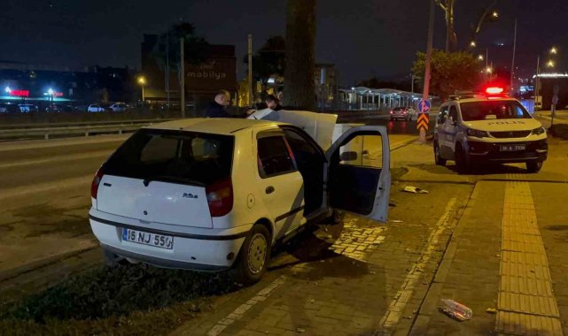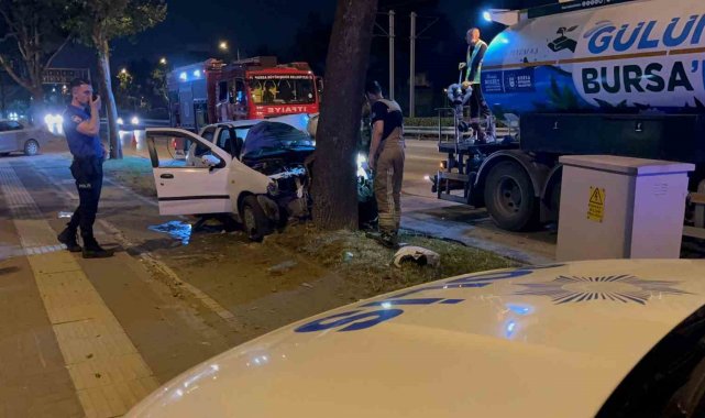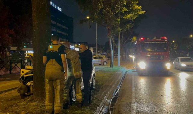 Bursa'da sürücüsünün kontrolünden çıkan otomobil yol kenarında bulunan ağaca çarparak durabildi. Yaşanan kazada 2 kişi yaralandı.