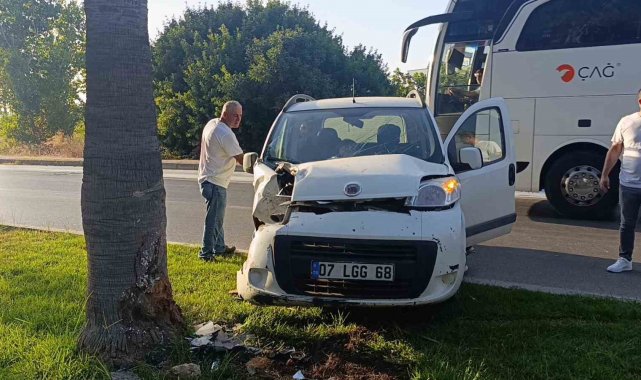 Manavgat Titreyengöl Caddesi'nde sürücüsünün direksiyon hakimiyetini kaybettiği hafif ticari araç, refüjdeki palmiyeye çarptı. Kazada araç sürücüsü yaralandı.