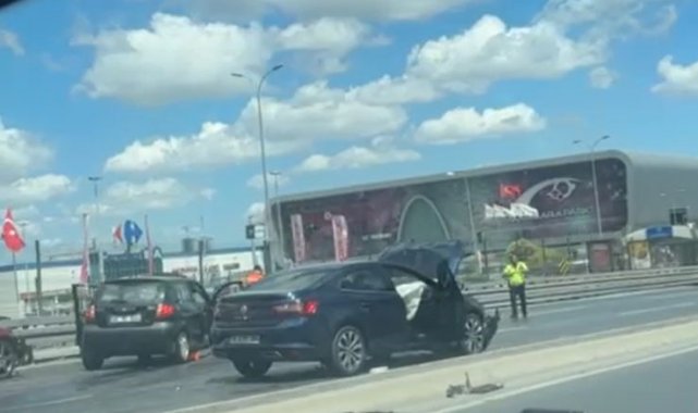 E-5 Karayolu Beylikdüzü mevkiinde direksiyon hakimiyetini kaybeden bir sürücü, yan yoldan anayola uçtu. Olayda toplamda 3 araç kazaya karışırken, yol uzun süre trafiğe kapandı. Yaşanan o anlar ise bir vatandaşın cep telefonu kamerasına yansıdı.