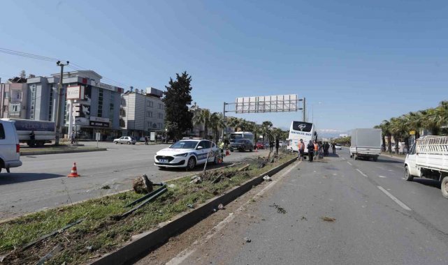 Kaza, saat 11.00 sıralarında Kepez İlçesi Emek Mahallesi Gazi Bulvarı üzerinde meydana geldi. Edinilen bilgiye göre, Alanya'da aldığı 3 yolcu ile birlikte İstanbul'a doğru yola çıkan Antalya Net firmasına ait yolcu otobüsünün iddiaya göre, Gazi Bulvarı üzerinde direksiyonu kilitlendi. Sürücü ve yanında bulunan yedek şoförün müdahale yeterli olmayınca otobüs önce orta refüje çıktı. Yaklaşık 50 metre boyunca refüjde bulunan ağaçlara çarparak ilerleyen yolcu otobüsü yol ortasında bulunan yol tabelasının ayağına çarparak durabildi. Kazayı gören diğer sürücü ve vatandaşların ihbarı ile olay yerine itfaiye, polis ve sağlık ekibi sevk edilirken, çarpışmanın etkisiyle direksiyon başında sıkışan sürücü Aydın Doğan (40) yaralandı. Yaralı sürücü itfaiye ekipleri tarafından bulunduğu yerden çıkartıldı.