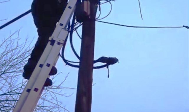 Merkez Kısmet Mahallesi'nde Bir ev kedisi yol kenarındaki ahşap direğe tırmandı. Direğin zirvesine kadar çıkan kedi, bir süre sonra aşağı inemeyerek mahsur kaldı.
