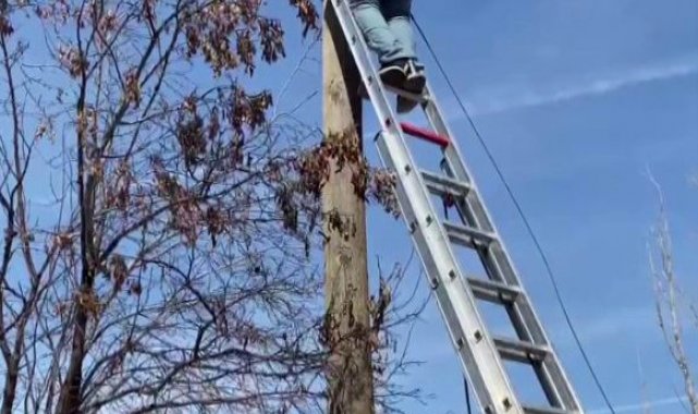Bingöl'ün Karlıova ilçesinde, yaklaşık 5 metrelik direkte mahsur kalan kedi, internet arızası için çalışma yapan işçinin müdahalesiyle kurtarıldı.