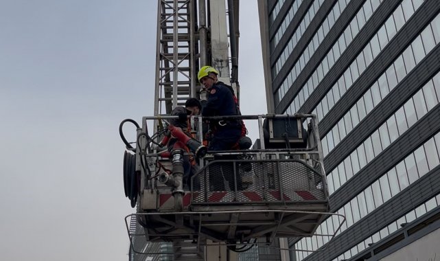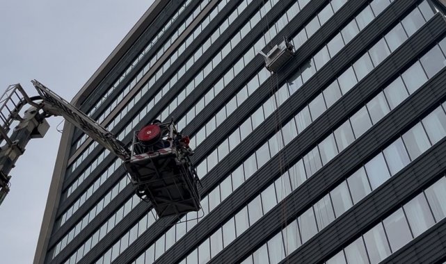 Dış cephede cam silerken asansör sistemi arıza yapınca mahsur kaldılar: İtfaiyenin müdahalesiyle kurtarıldılar