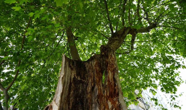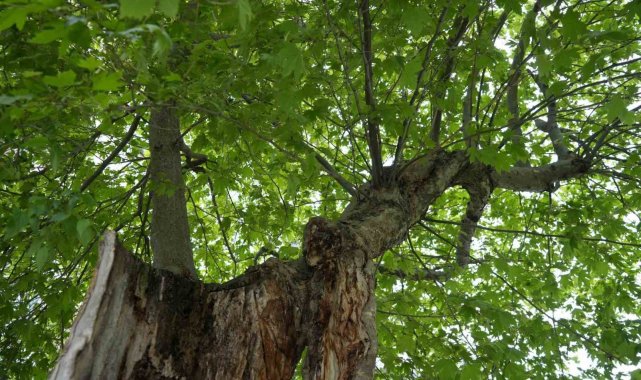 Samsun'un İlkadım ilçesinde yer alan ve gövdesi yandıktan sonra dış kabuğu üzerinde hayata tutunan tescilli asırlık çınar ağacı, görenleri hayrete düşürüyor. Dışarıdan bakıldığında içi tamamen boş olan ve sadece dış kabukla ayakta kalan çınar ağacı, üst dallarındaki yeşilliklerle doğaya tutunmaya devam ediyor.