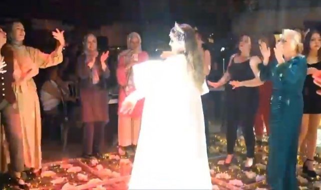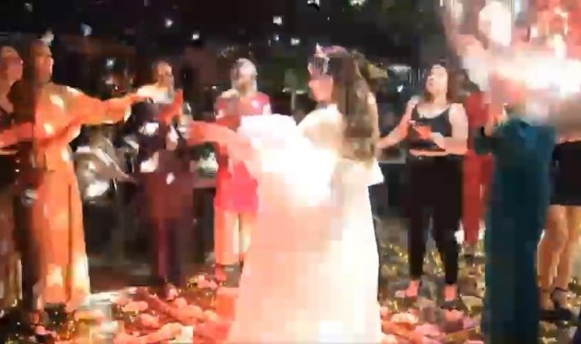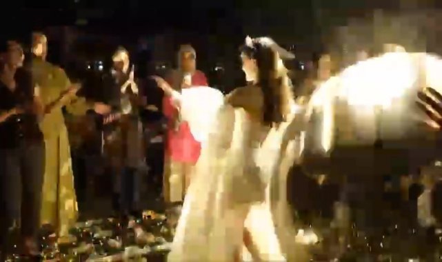 Olaya ilişkin görüntü ortaya çıktı. Görüntülerde gelinin dans ettiği anda disko topunun gelinin üstüne düştüğü görülüyor.