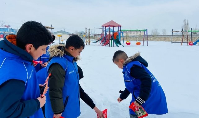 Ağrı'nın Diyadin ilçesinde, Diyadin Gençlik ve Spor İlçe Müdürlüğü tarafından yürütülen Kış Kulübü programı kapsamında gençler, sokak hayvanlarını unutmadı.