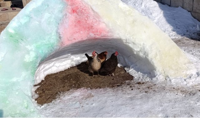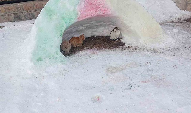 İlçede duyarlı vatandaşlar tarafından kardan yapılan barınaklar, hayvanlara adeta sığınak oldu. Soğuktan korunmaları için özenle hazırlanan kar tünellerinin içinde tavuklar ve bir kedi güvenli şekilde barınırken, bu görüntüler yürekleri ısıttı. Barınakların içerisine saman serilerek hayvanların zeminden gelen soğuğa karşı korunması da sağlandı.