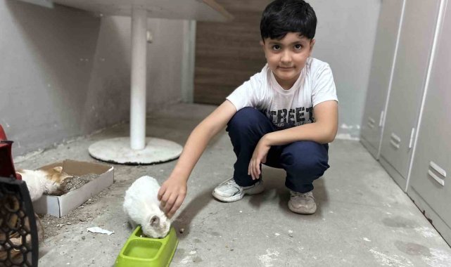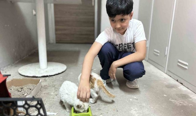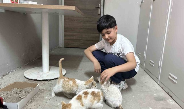 Ağrı'nın Diyadin ilçesinde, Gençlik ve Spor İlçe Müdürlüğü bünyesindeki öğrenciler, anneleri ölen üç yavru kediye sahip çıktı