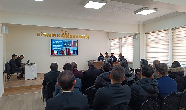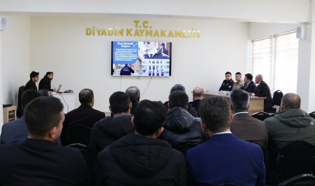 Diyadin Kaymakamı Mustafa Karsali başkanlığında, İlçe Jandarma Komutanı Binbaşı Tolga Seçkin Zafer, İlçe Emniyet Amiri Başkomiser Oğuz Kaan Çambel ,İlçe Milli Eğitim Müdürü Remzi Işık ,Şube ve Okul Müdürlerinin katılımıyla "2. Dönem Okul Güvenliği ve Tedbirleri" toplantısı yapıldı.