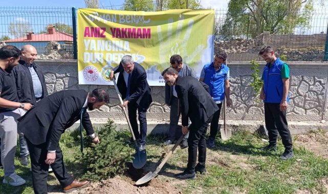 Diyadin'de "Orman Benim" kampanyası kapsamında fidan fikimi ve temizlik etkinliği