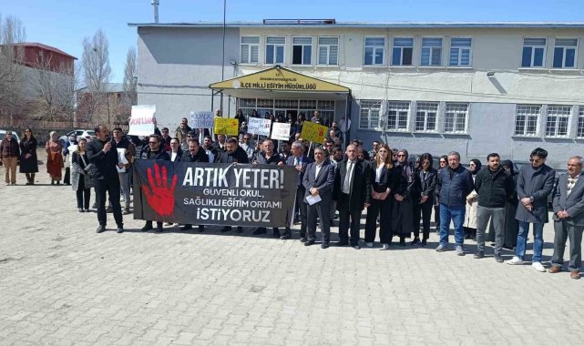 Diyadin İlçe Milli Eğitim Müdürlüğü önünde toplanan eğitimciler, taşıdıkları pankart ve dövizlerle eğitim kurumlarında artan şiddet olaylarına dikkat çekti. "Artık yeter! Güvenli okul, sağlıklı eğitim ortamı istiyoruz" yazılı pankart, eylemin ana mesajını oluşturdu.(İHA)Emrullah Karip