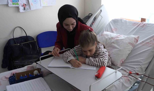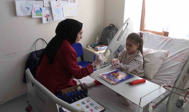 Hemşirelerin talebi üzerine gönüllü akademisyen ve öğrenciler, diyaliz hastası 13 yaşındaki Melek'e hastanede eğitim vererek okuma yazma öğrenmesine destek oluyor.