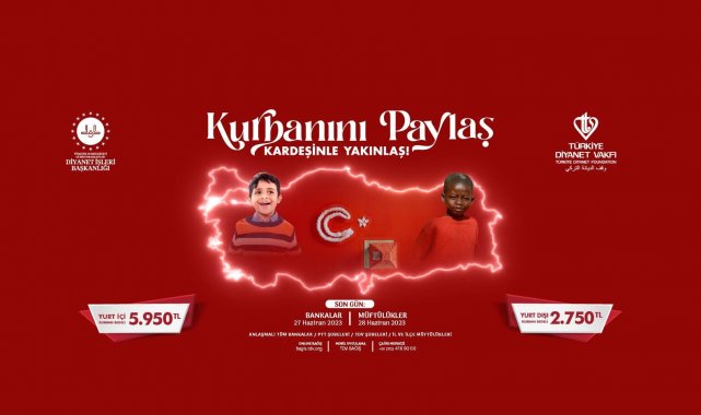 Erbaş, paylaşımında, "Kurbanını Paylaş Kardeşinle Yakınlaş. Diyanet İşleri Başkanlığı ve Türkiye Diyanet Vakfı olarak 2023 yılı vekaletle kurban kesim bedelini yurt içinde 5 bin 950 lira, yurt dışında ise 2 bin 750 lira olarak belirledik. Bağışlarınızı başta deprem bölgesi olmak üzere tüm ihtiyaç sahibi kardeşlerimize ulaştırıyoruz" ifadelerini kullandı.