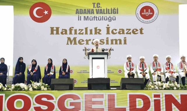 Diyanet İşleri Başkanı Ali Erbaş, Yüreğir Serinevler Spor Salonu'nda düzenlenen Hafızlık İcazet Merasimi'ne katıldı. Merasimde Kur'an-ı Kerim tilavetinin ve konuşmaların ardından hafızlık eğitimini tamamlayan 475 gence icazet belgesi verildi.