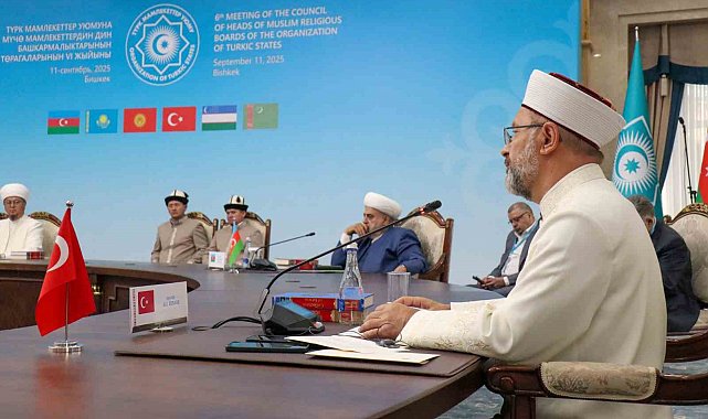Diyanet İşleri Başkanı Ali Erbaş, resmi ziyareti kapsamında Kırgızistan'a geldi. Başkan Erbaş, başkent Bişkek'te gerçekleştirilen Türk Devletleri Teşkilatı (TDT) Üye Ülkeleri Diyanet İşleri ve Dini İdare Başkanları 6'ncı Toplantısı'na katıldı. Başkan Erbaş, toplantıda yaptığı konuşmada, Kur'an-ı Kerim'den sonra İslamiyet'in ana kaynakları olarak gösterilen kitapların neredeyse tamamının Türki Cumhuriyetlerin bulunduğu coğrafyada yetişen alimler tarafından yazıldığını söyledi. İnsanlığın derin bir anlam ve değerler krizi yaşadığını belirten Başkan Erbaş, "Fitneler, İslam coğrafyasını kuşatmış durumdadır. Coğrafi parçalanmışlık, zihinsel dağınıklığı beraberinde getirmiştir. Dağınıklığın neticesinde gücünü ve ihtişamını kaybeden İslam coğrafyası, emperyalist müdahaleler ve meydan okumaların karşısında askeri, siyasi ve kültürel açıdan kendini savunmakta zorlanmaktadır" dedi.