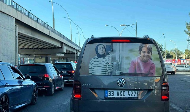 Diyarbakır'da bir vatandaş, kaybolduktan sonra cansız bedenleri bulunan Narin Güran ve Rojin Kabaiş'in fotoğrafını arabasının arka camına yapıştırarak unutulmadıklarına dikkat çekti.