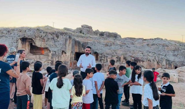 12 bin yıllık tarihe pedal çeviren çocuklar, start alanından bitiş alanına gelirken, Diyarbakır Müze Müdürü Müjdat Gizligöl'ün öncülüğünde Hilar Mağaraları ve Çayönü Tepesi ile ilgili bilgiler paylaştı.