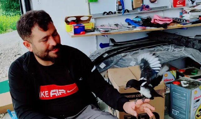 İlçede oto tamirciliği mesleğini yapan Sıdık Evran, 2024 yılının ikinci ayında polis arkadaşının emniyette bulunan çam ağacından düşen karganın kendisine getirilmesiyle beslemeye başladı.