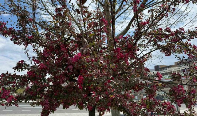 Diyarbakır'ın birçok noktasında kırmızı çiçeklerini açan sesbanya ağaçları, sıcak havaları müjdeledi.