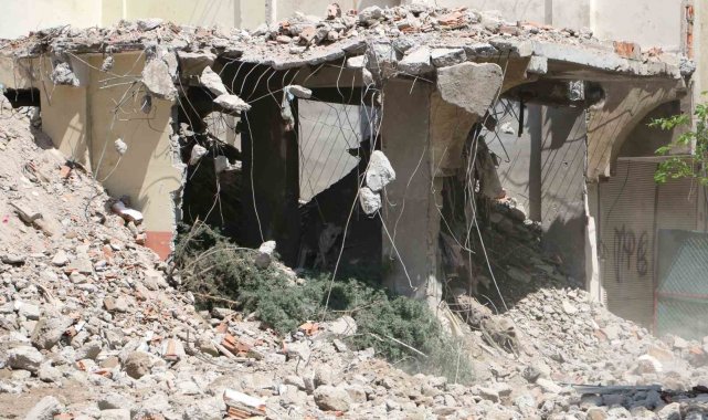 Diyarbakır'da ağır hasarlı bina yıkılırken yandaki sağlam bina da hasar aldı