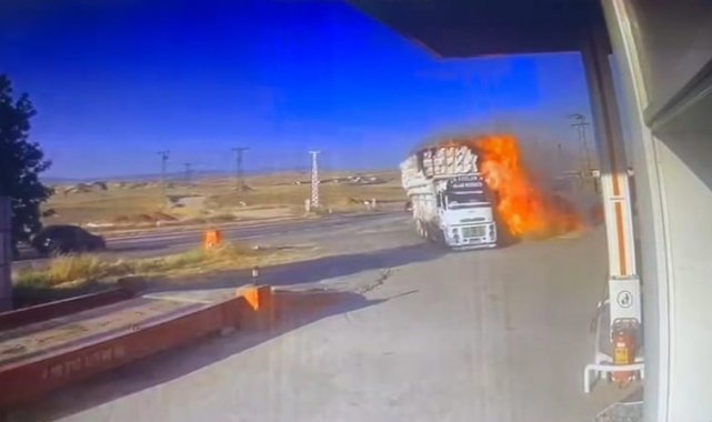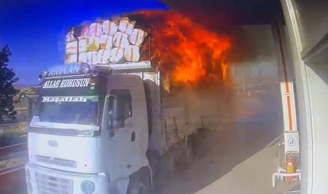 Öte yandan, yangın anı istasyonun güvenlik kamerasına yansıdı. Görüntülerde, sürücünün manevralar yaparak saman balyalarını düşürmeye çalıştığı, alev topuna dönen saman balyalarıyla istasyona girdiği görülmekte. Facianın eşiğinden dönüldüğü anlar, saniye saniye kameralara yansıdı.
