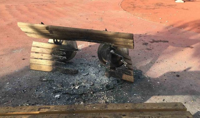 Diyarbakır'ın Kayapınar ilçesindeki bir parkta bazı banklar yakıldı.