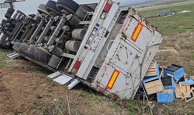 Diyarbakır'ın Bismil ilçesinde boş sebze kasa yüklü tırın devrildiği kazada sürücü yaralandı.