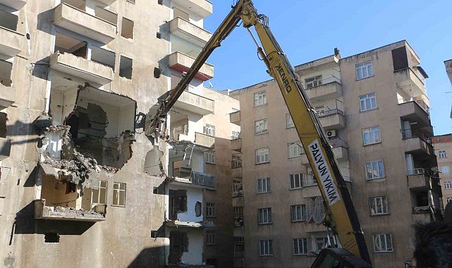 Diyarbakır'da depremden etkilenen ağır hasarlı binaların yıkımı devam ediyor