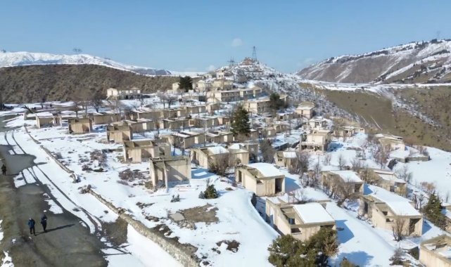 Diyarbakır'da Bisiklet ve Doğa Sporları Kulübü üyeleri, Çüngüş ilçesinde İtalyanların yaşadığı köyü gezdi. Karla kaplanan bölgedeki doğal güzelik dron ile görüntülendi.