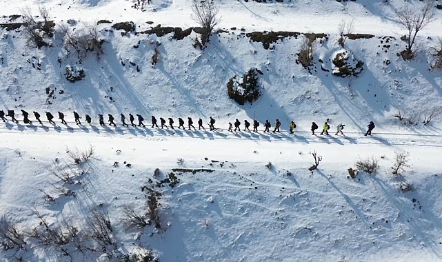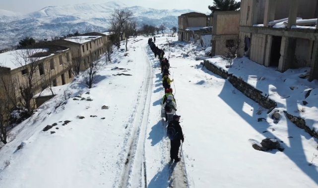 Diyarbakır'da doğaseverler karlı yollarda İtalyanların kaldığı köyü gezdi