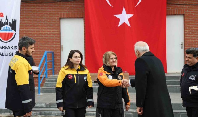 Diyarbakır'da eğitimlerini tamamlayan arama-kurtarma ekiplerine 'peç' takıldı