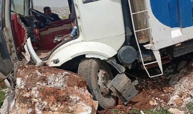 Diyarbakır'da freni boşan hafriyat kamyonu taşlara çarptı: 1 yaralı