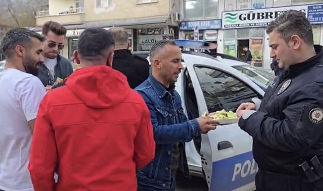 Diyarbakır'ın Çermik ilçesinde kavga ihbarına giden polis tatlı bir sürprizle karşılaştı. İhbarı Polis Haftası kutlaması için yapan vatandaş, gelen polis sarılıp haftalarını kutladıktan sonra çiğköfte ikram etti.