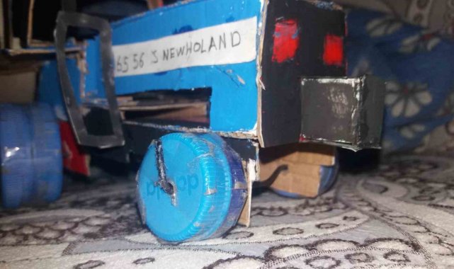 Uğur, kullandığı malzemelerin ise mukavva, spreyler, yapışkanlar olduğunu kaydederek, "Bu malzemelerden traktörümü tasarlıyorum. İlk başta kağıda çizimlerimi yapıyorum. Sonra üç boyutlu tasarımlarının maketlerini yapmaya çalışıyorum. Yaptığım projelerin yetkili kişiler tarafından görülüp değerlendirilmesini, elimden tutulmasını istiyorum. Traktörümüzün sinyalleri kumanda ile açılıp kapatılıyor. Traktörüm, gerçeğinde olduğu gibi kolları inip kalkmaktadır. Hız ayarını yapıyorum. Traktörümüze paneli taktıktan sonra telefonlarımızı şarj edebiliriz, ayrıyeten traktörümüz elektrik de üretmektedir" dedi.