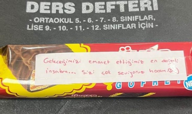 Diyarbakır'da 80. Yıl Cumhuriyet Anadolu Lisesi öğrencileri, öğretmenlerine yaptıkları jestle tüm Türkiye'nin kalbine dokundu. Kahramanmaraş ve Şanlıurfa'daki saldırıların ardından aralarında harçlık toplayan öğrenciler aldıkları hediyeleri üzerine yazdıkları "Elimizde silah değil çikolata var, içimizde kin değil sevgi var" notuyla öğretmenlerine dağıttı.