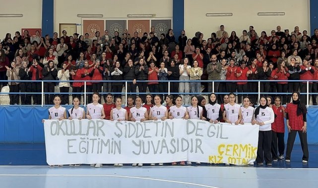 Diyarbakır'ın Çermik ilçesinde düzenlenen voleybol turnuvasında öğrencilerin açtığı ''Okullar şiddetin değil eğitimin yuvasıdır'' pankartı, görenleri duygulandırdı.