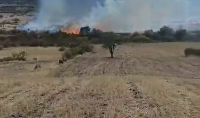 Diyarbakır'ın Hazro ilçesinde otluk alanda çıkan yangında onlarca ağaç kül oldu.