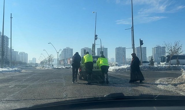 Kentte yoğun kar yağışının ardından dondurucu hava etkili oldu. Bir sürücü, uzun süre otomobilini çalıştırmaya çalıştı. Bölgede bulunan trafik polisleri, sürücünün bu durumunu görünce otomobili iteleyerek yardımcı oldu. Polislerin bu desteği cep telefonu kamerasıyla kayada alındı.